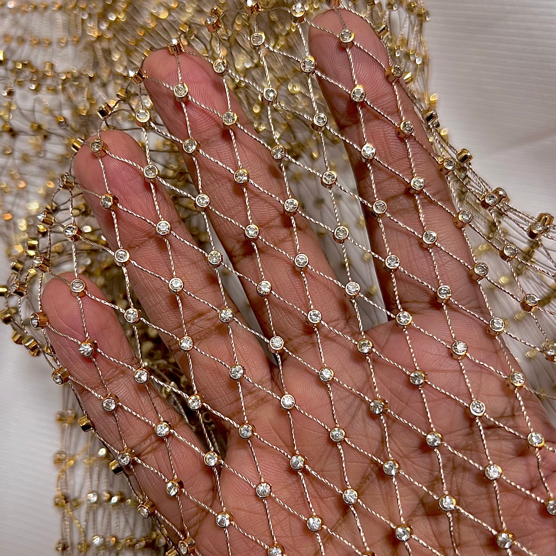 Rhinestone Gold Mesh Crop Top [Crew Neck]