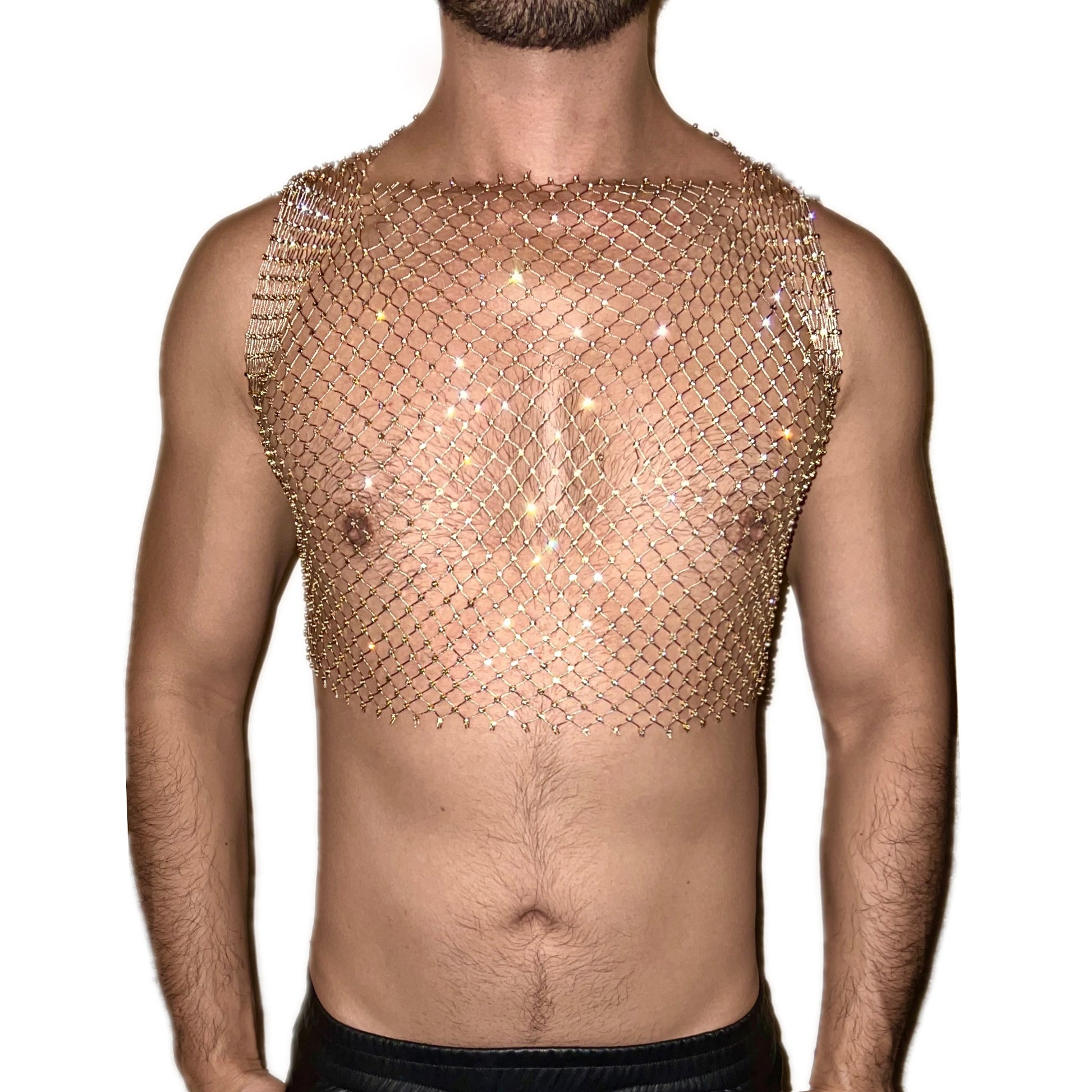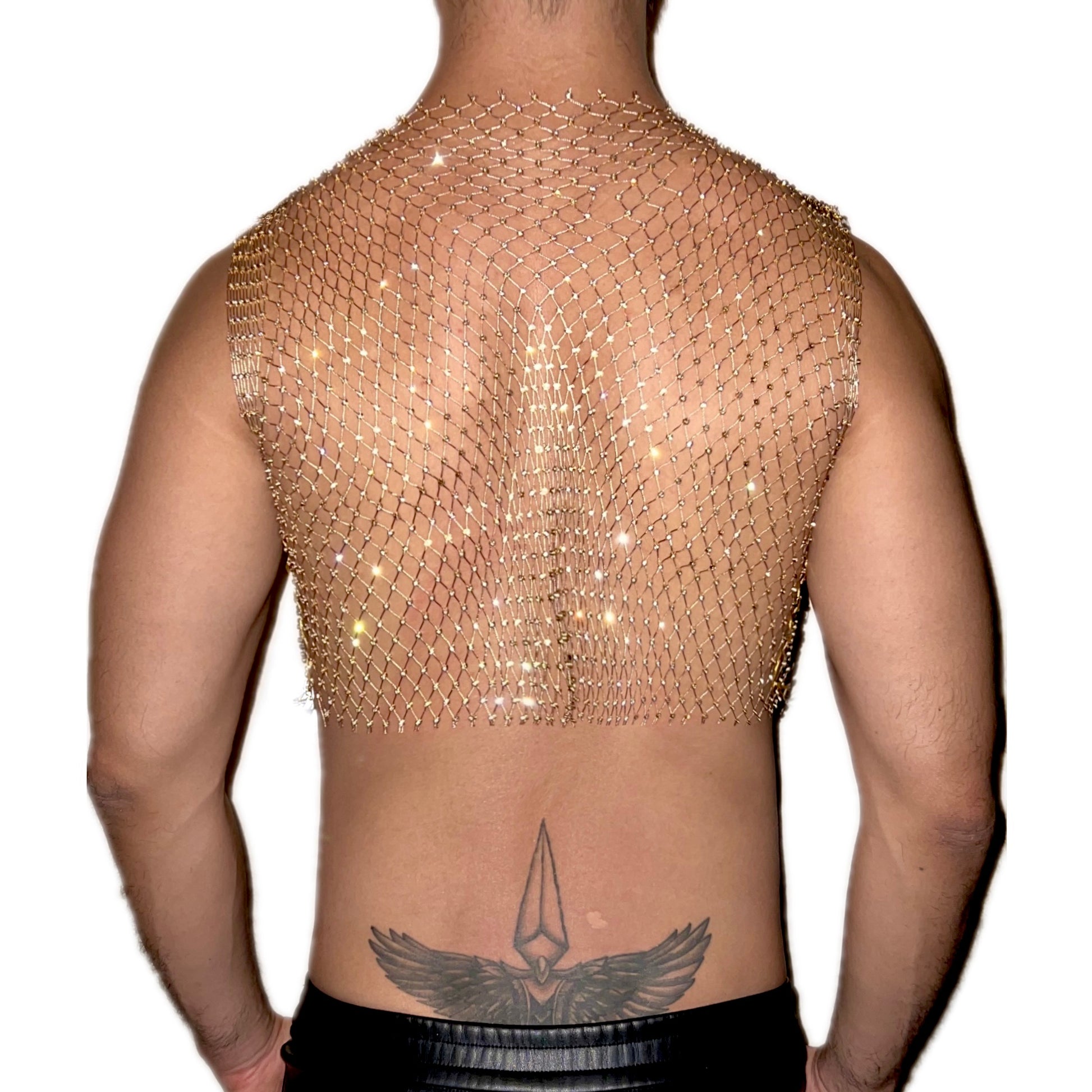 MAKE A STATEMENT WITH OUR UNISEX RHINESTONE MESH CROP TOP