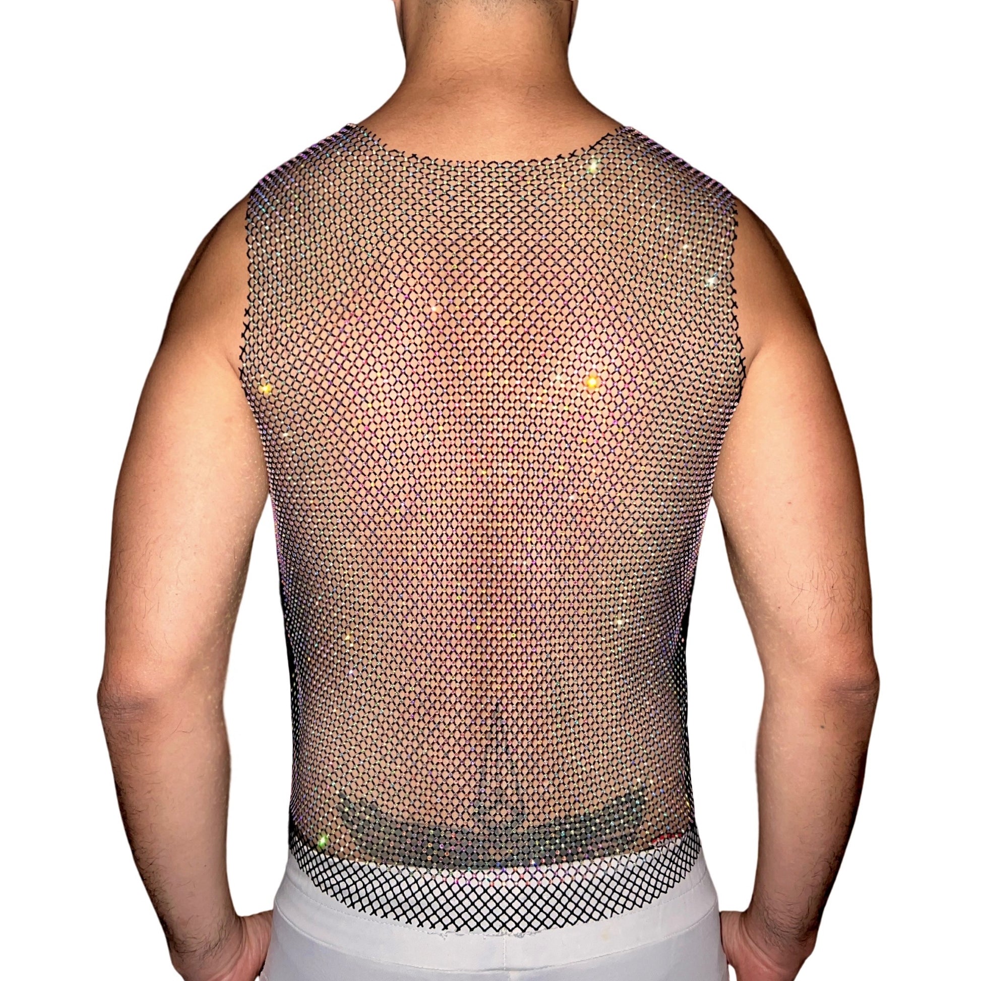 MAKE A STATEMENT WITH OUR NEW UNISEX PREMIUM RHINESTONE RAW CUT MESH TANK TOP