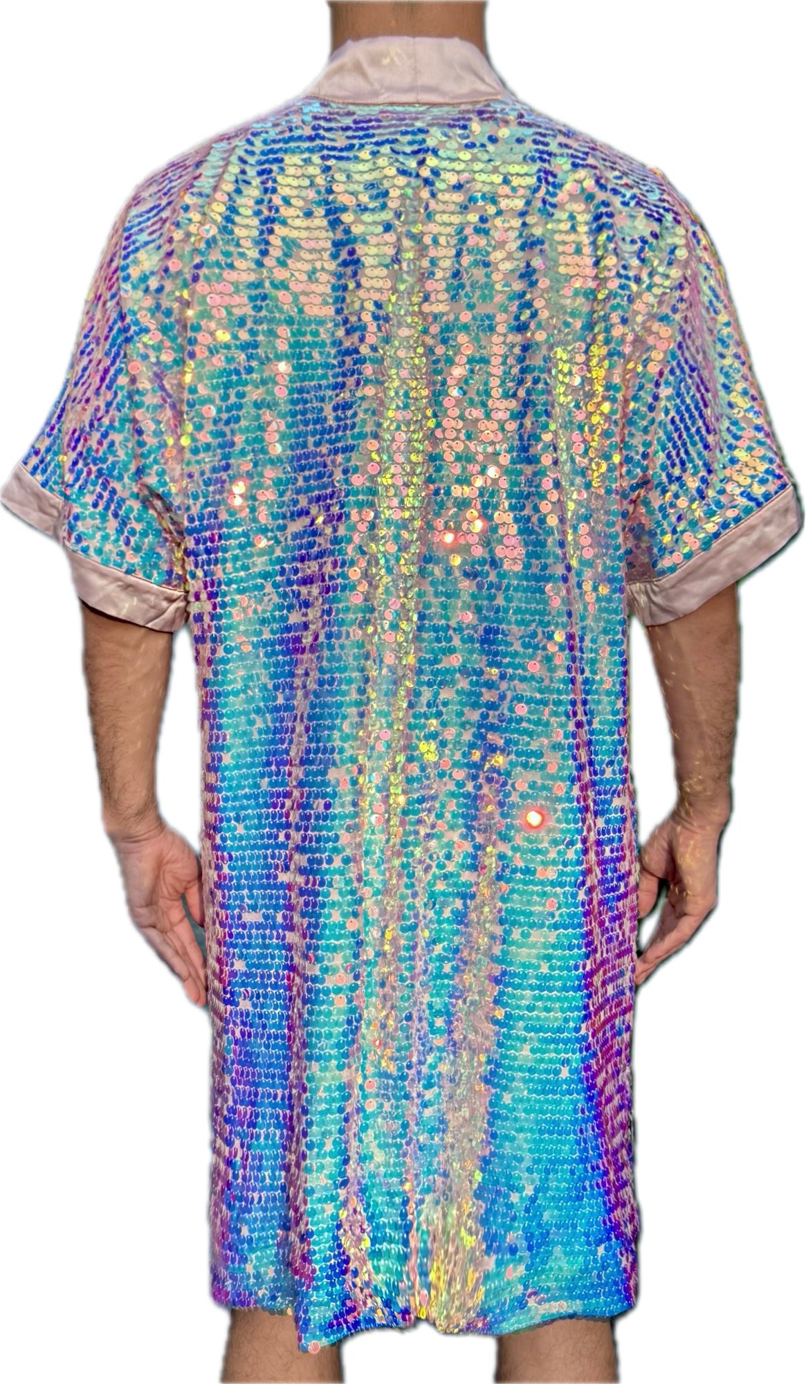 Don't miss out on the chance to add this stunning sequin kimono to your collection. It's the perfect statement piece for any fashion-forward person who wants to stand out from the crowd with effortless style and glamour.