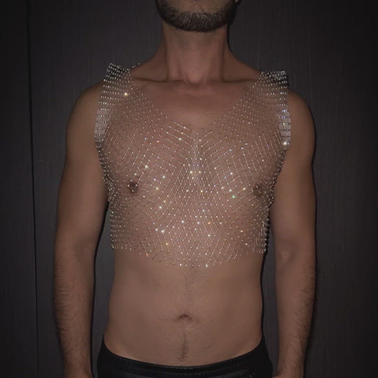 MAKE A STATEMENT WITH OUR UNISEX RHINESTONE MESH CROP TOP